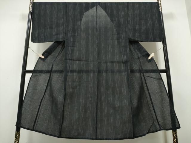 平和屋着物∴夏物 男性 阿波しじら織 浴衣 間道 黒地 綿 ng