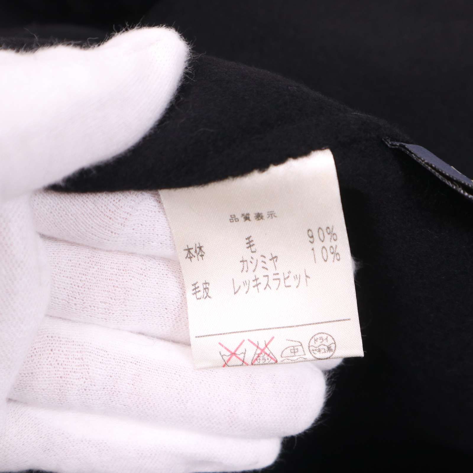 Leilian レリアン COLOMBO社♪ レッキスラビット ファー ウール-カシミヤ ポンチョ ケープ ジャケット Sz.M レディース 黒