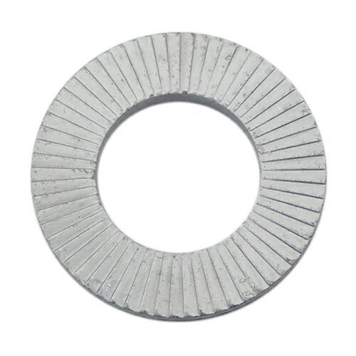 ノルトロックワッシャーは二枚がペアになっており、かみ合い面にクサビ形状のカムが施され、そのクサビ角度がボルトのネジ角度より大きく設定されている為、ボルトが緩まないばかりか、クサビ効果によりボルト張力が増加します。また、外側の両面には放射状に歯が刻まれておりボルトが締め付けられるに従い、その歯がナット、ボルト面座面及び被締付物に食い込み固定されます。