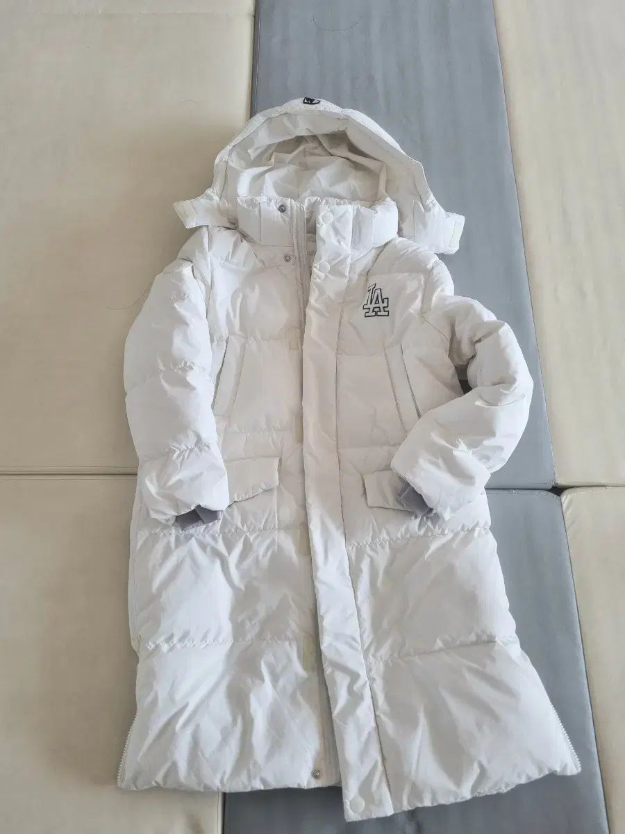 MLB 白 ロングダウンジャケットです。155 サイズで、詳細サイズは最後のサイズ表をご参照ください…グースダウンなのでダックダウンより軽く、さらに暖かいです。
