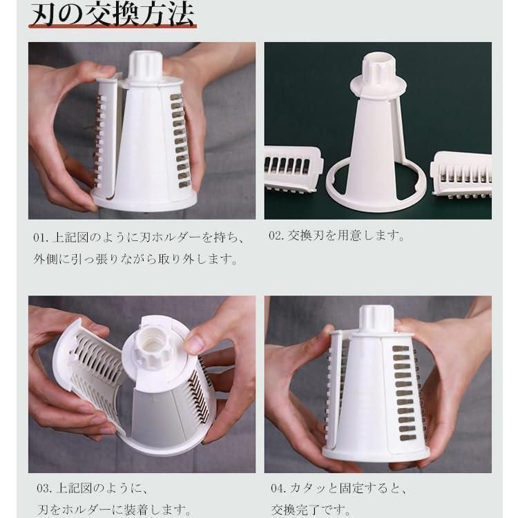【お手入れ簡単】手動回転式おろし金スライサーは、簡単に組み立ておよび分解できます。 簡単な洗浄、洗浄ブラシを使用して流水で洗浄します。