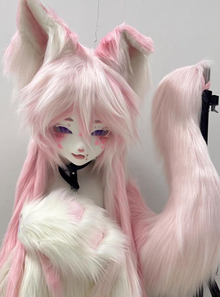 ファースーツ 着ぐるみセット NO 313 キツネ ピンク ケモノ 全頭ヘッド ぬいぐるみ コスプレ コスチューム