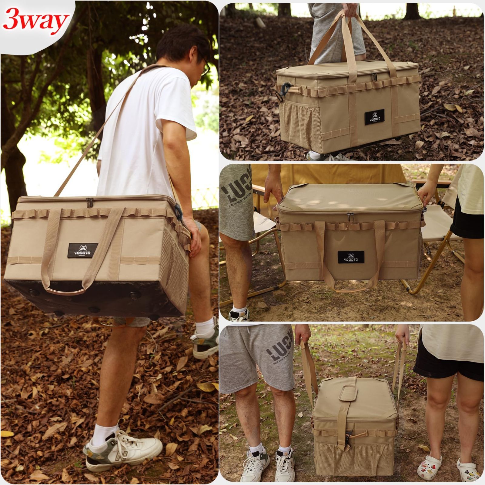 YOGOTO 収納ボックス アウトドア キャンプ ギアボックス コンテナ 36L/60L トランク収納 大容量 深型 車載収納 仕切り付き 大きいサイズ メッシュポケット付き デージーチェーン付き ショルダーストラップ付き 軽量 持運び便利 (カーキ色(36L+60L))