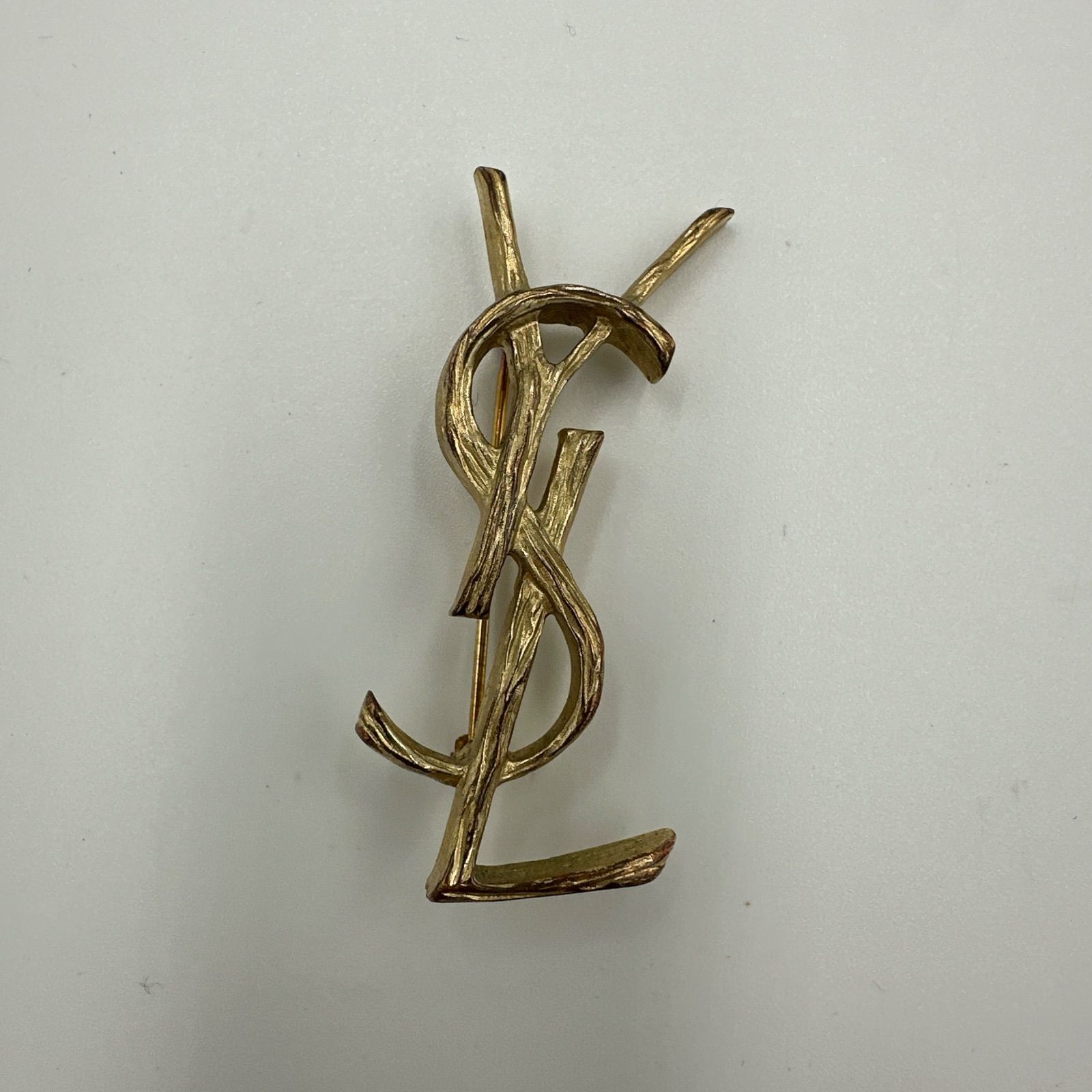 YSL イヴ サンローラン ロゴ ブローチ ゴールド