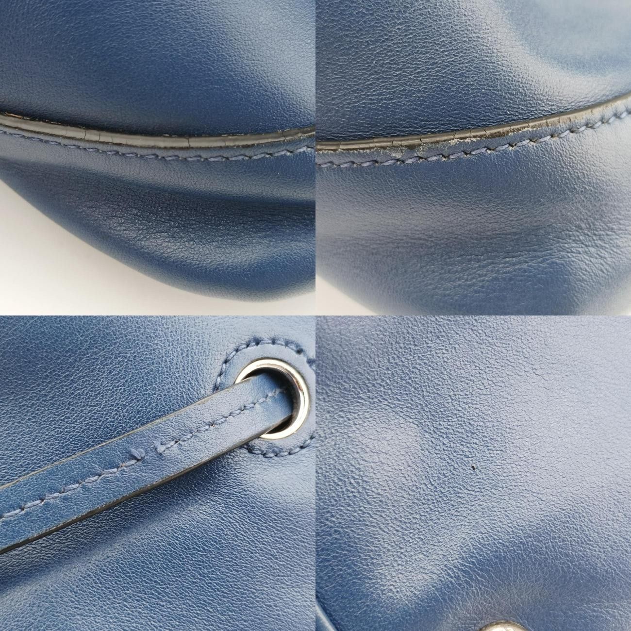 プラダPradaタッセル ドローストリング バケツ ブルー レザー BR 5069 7 G