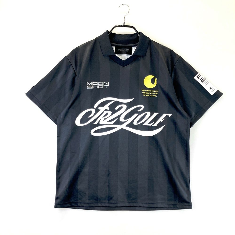 サイズ L FR 2 GOLF エフアールツーゴルフ 半袖ポロシャツ スキッパー ストライプ柄 ブラック系 ゴルフウェア メンズ ストスト