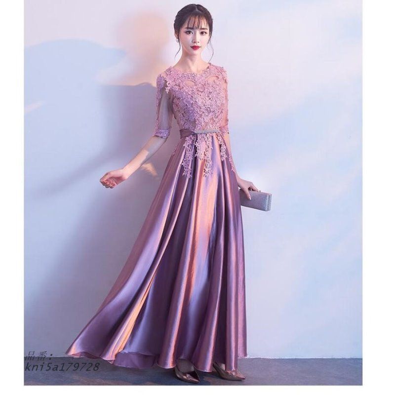袖あり ロングドレス ウエディングドレス パーティードレス 10代 20代 食事会 40代 卒業式 30代 お呼ばれ Aライン 成人式 二次会披露宴 結婚式ワンピース kni 5 a 179728
