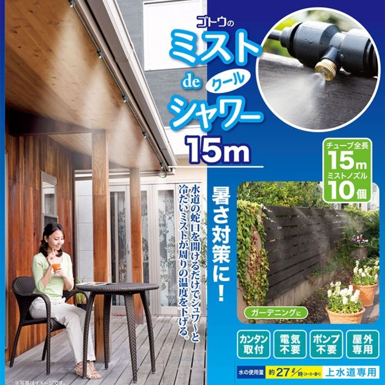 ミストシャワー 屋外用 ミストdeクールシャワー 15 m 噴霧ノズル ミストホース 散水機 ガーデニング 熱中症対策 暑さ対策 ひんやり