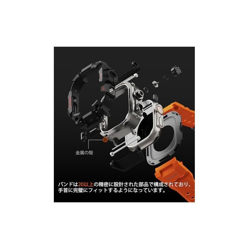 商品名:コンパチブル Apple Watch Ultra 3/Ultra 2/Ultra バンド アップル ウォッチ バンド 49mm ケース 一体型, ミリタリーグレード耐衝撃バンパーカバーTPU/TPE 耐衝撃 滑り止め 耐久性 落下防止 (オレンジ・ブラック,