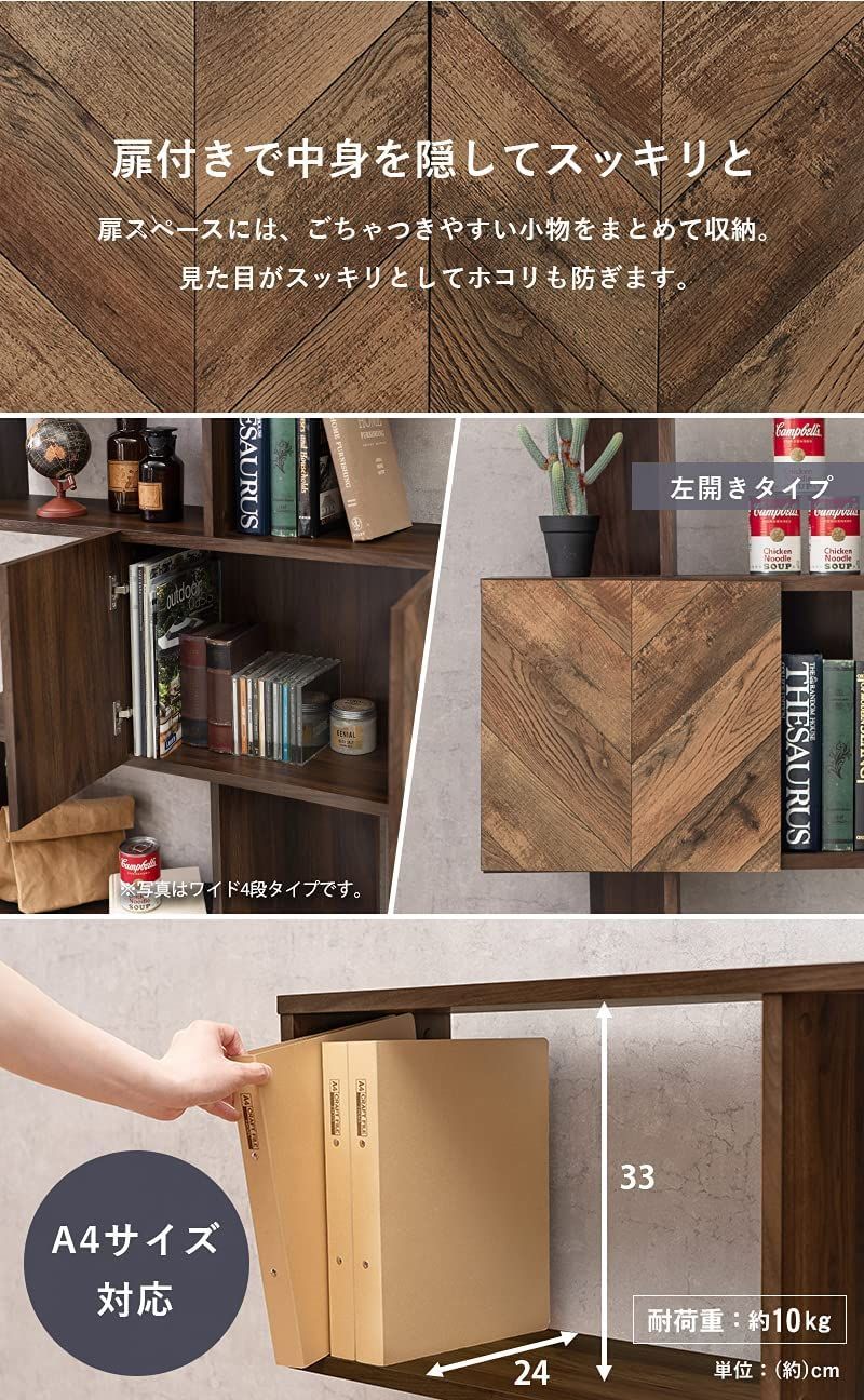 萩原(Hagihara) ディスプレイラック 本棚 扉 付き 収納 木目調 インダストリアル 約 幅59 奥行25.5 高さ142.5 cm 4段 本 書類 ラック 棚 book shelf RCC-1015BR 1台入り