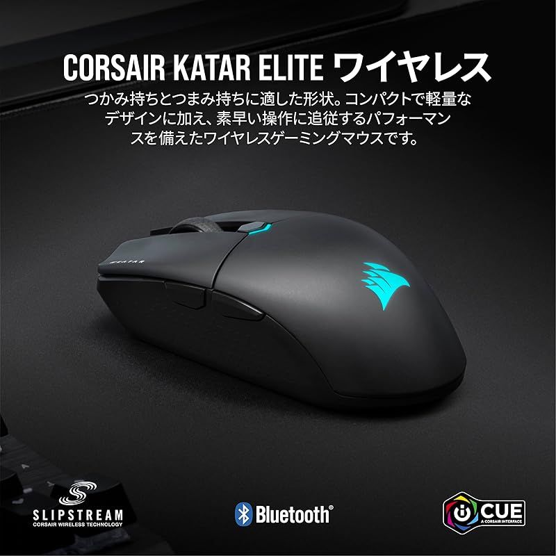 CORSAIR iCUE KATAR Elite Wireless ワイヤレスゲーミングマウス 軽量マウス 脱着 ケーブル付き CH 931 C 111 AP ブラック