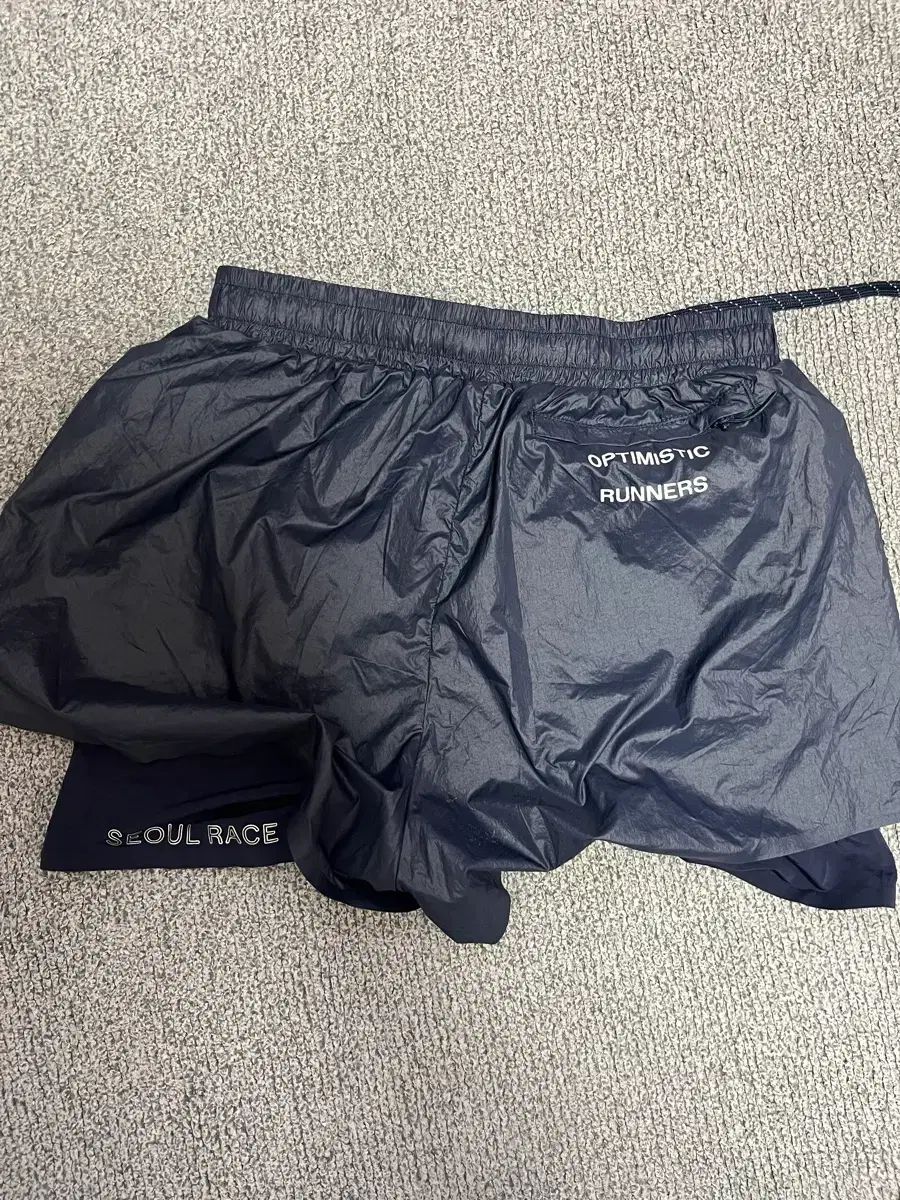 オプティミスティック ランナーズ SEOUL ソウル キット ハーフパンツ Mサイズです。表地はネイビー 色 カラー 薄い ウィンドブレーカー 素材で、裏地はレギンスで支えています。 スポーツ する時に 快適に 着る 良い 商品です。