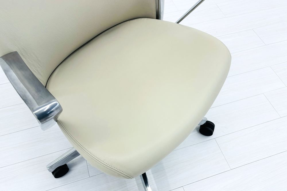 ノール Knoll ノル リミックスチェア 2020年製 ハイバック アルミループ肘 アルミミラー脚 レザー ベージュ