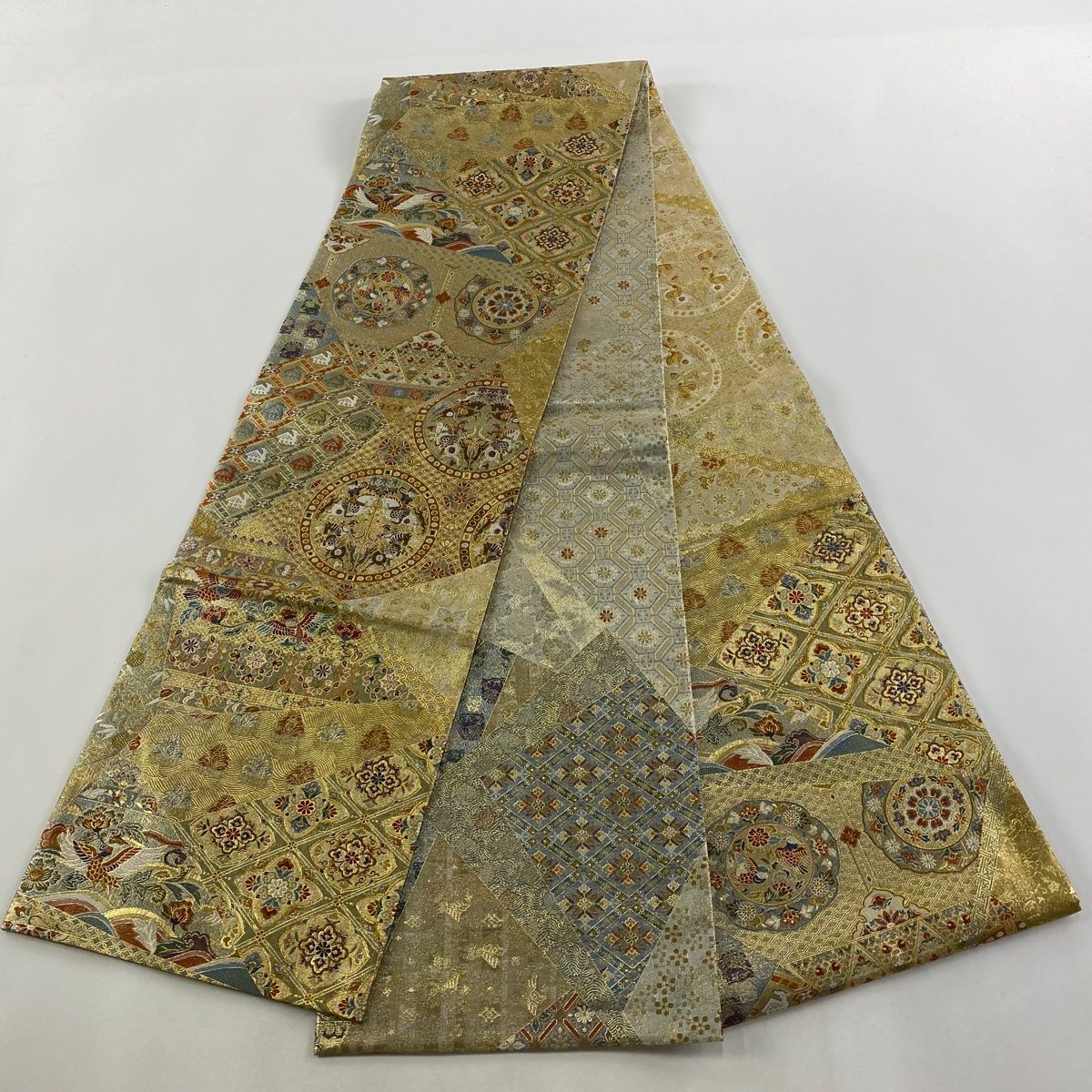 丸帯 狩猟文 草花 金銀糸 刺繍 金色 六通 正絹