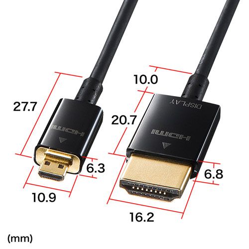 ■コネクタ:HDMIマイクロプラグーHDMIプラグ(HDMIタイプDーHDMIタイプA)