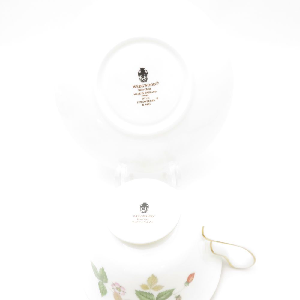 ウェッジウッド ワイルドストロベリー ティーカップ&ソーサー 3客 セット ピオニー 旧刻印 黒壺