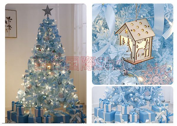 翌日配送 1.8 mブルー系 ツリー おしゃれ 北欧 ツリーセット LEDイルミネーションライトオーナメントセット 簡単組立 店舗 部屋 飾り
