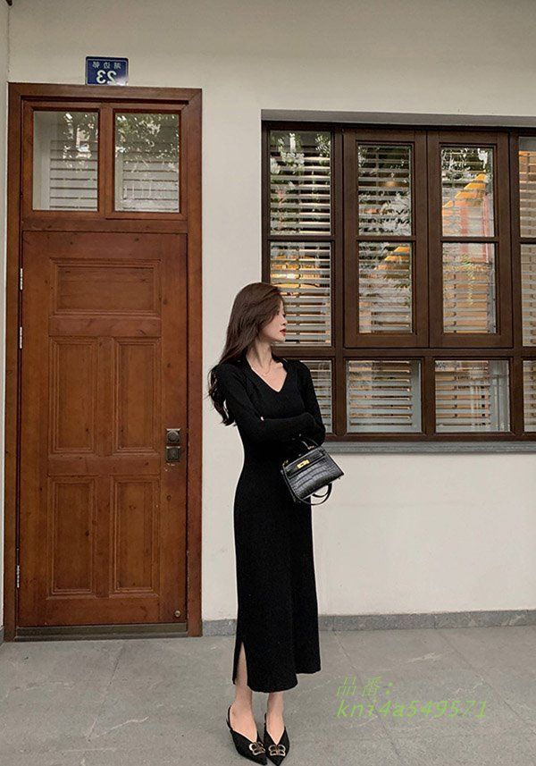 ニットワンピース レディース ロング ワンピース 秋冬 長袖セーター お洒落 体型カバー 柔らか ゆったり 通勤 上品 kni 4 a 549571
