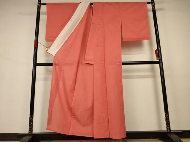 平和屋着物 夏物 色無地 芝紋紗 鉛丹色 洗える着物 jd