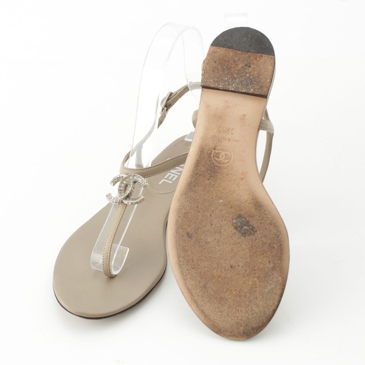 シャネル ココマーク ラインストーン サンダル G 28308 ベージュ 35.5