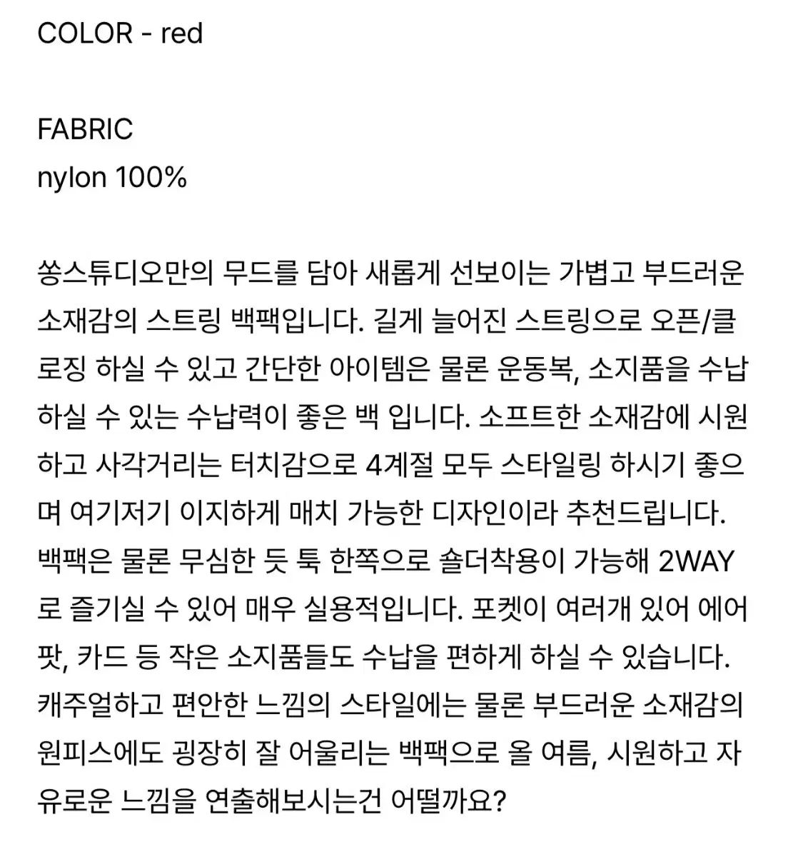 レッド カラー の ソンスタジオ シャーリング バックパック です。ゆったりしている 収納 用 が 高い です。軽く 持って 行く の が 良い バックパック です。別途 コメント 無ければ 馬狼 照英 安全決済 お願い します!