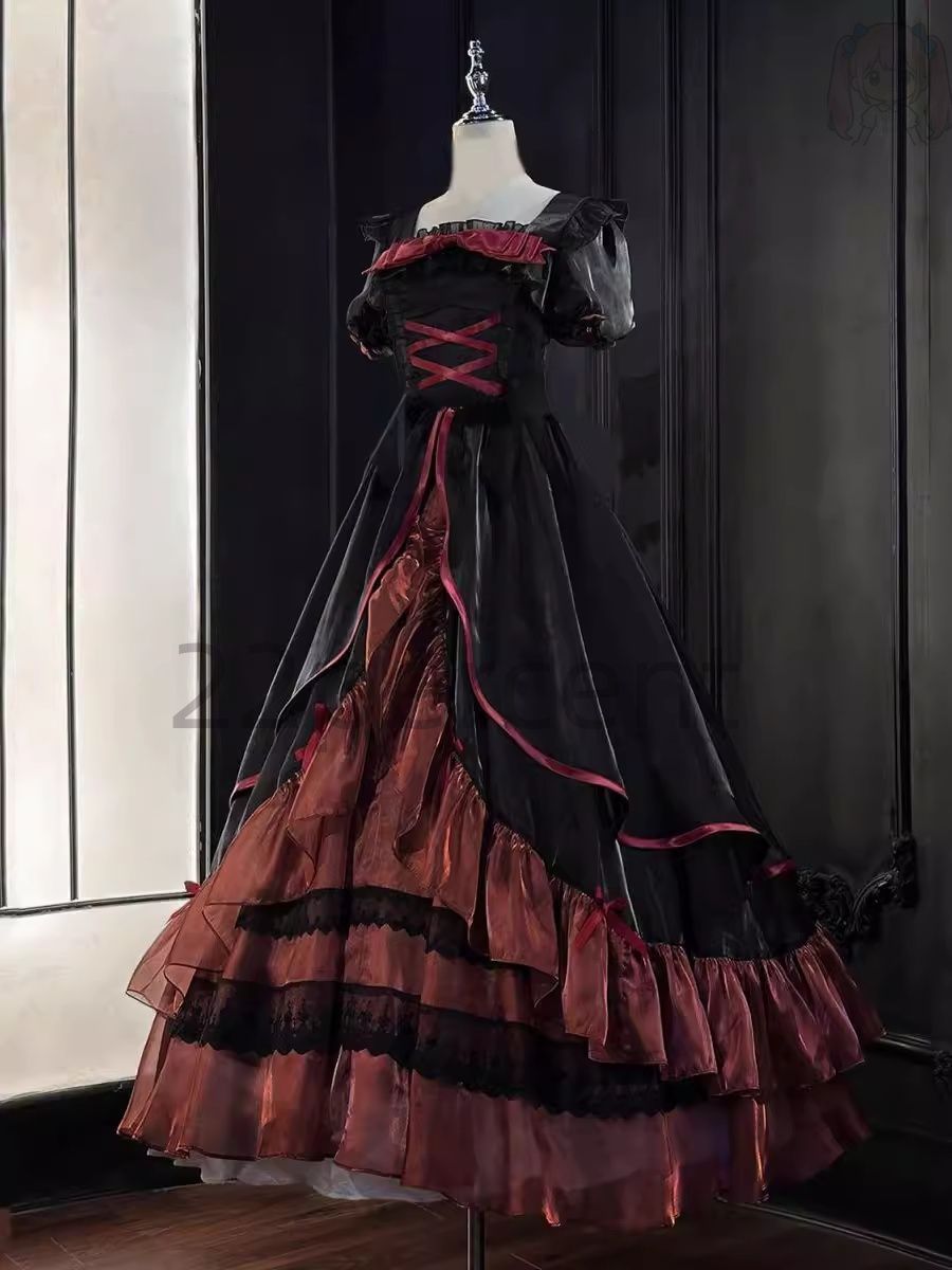 ゴシック ロリータ ワンピース 黒赤 パンク 成人式 花嫁 ドレス フォーマル パーティー イベント 特別な日 ミステリアス 個性的 ダークファンタジー 大人