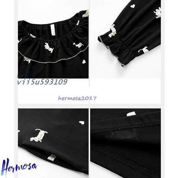 春秋 ネグリジェ レディース パジャマ ルームワンピース コットン 肌に優しい カジュアル ゆったり 犬柄 綿 薄手 家着 ロング丈 長袖 vii 5 u 593109