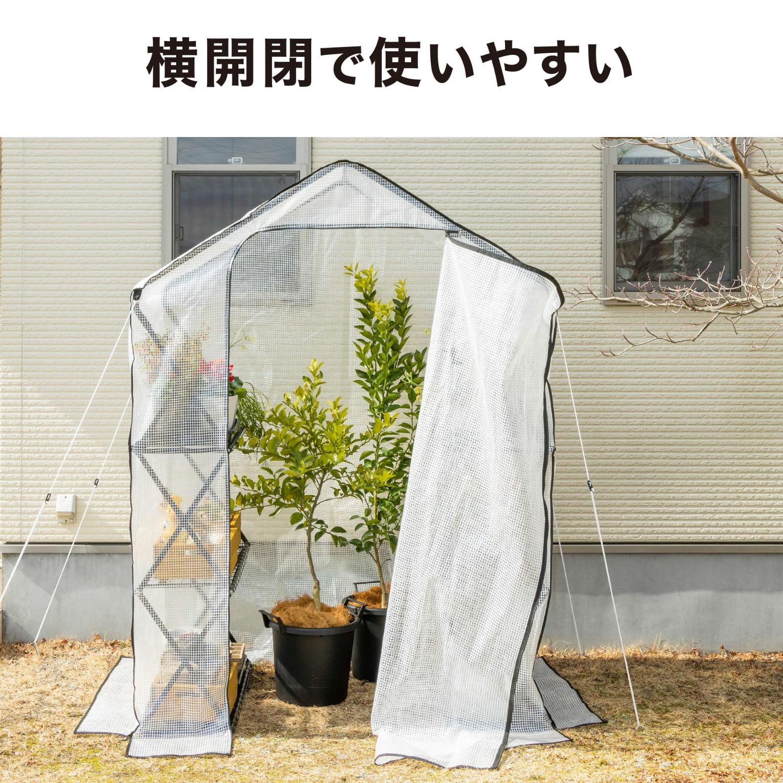 ●本商品は一般家庭での使用を目的としたものです。公共および商業施設では使用しないでください。●雨をしのぐ構造になっていますが、防水仕様ではありません。水に弱いものは収納しないでください。●使用環境や植物の特性により、冬越しを目的として使用できない場合があります。●ご使用前に取扱説明書をお読みください。