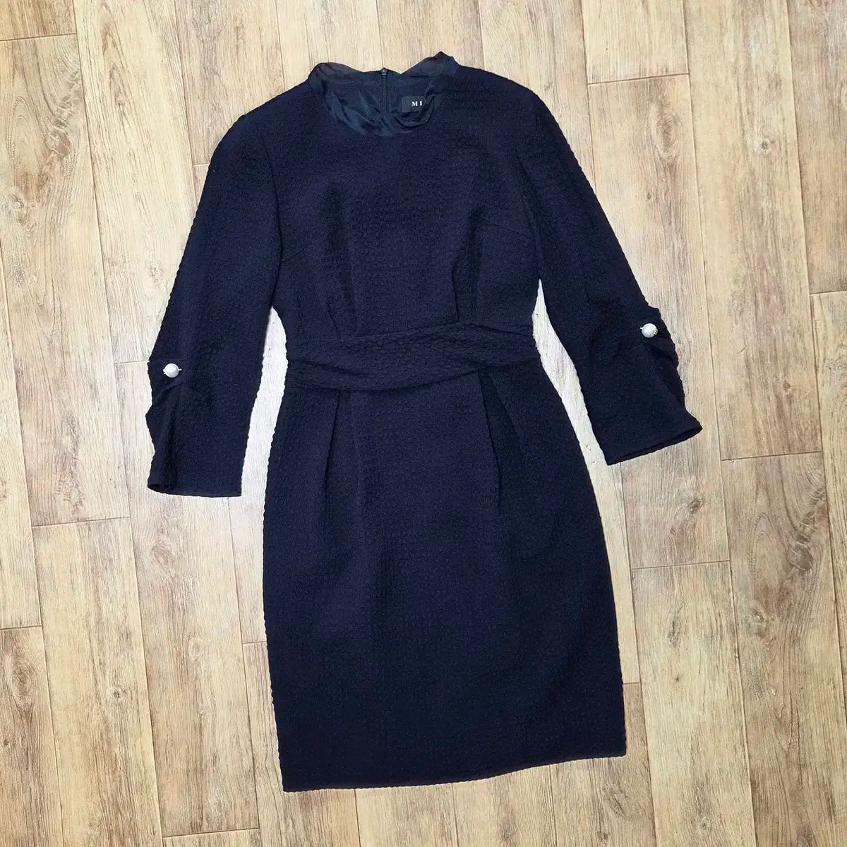 ネイビーカラーにエンボス ストラクチャード ONE PIECEです