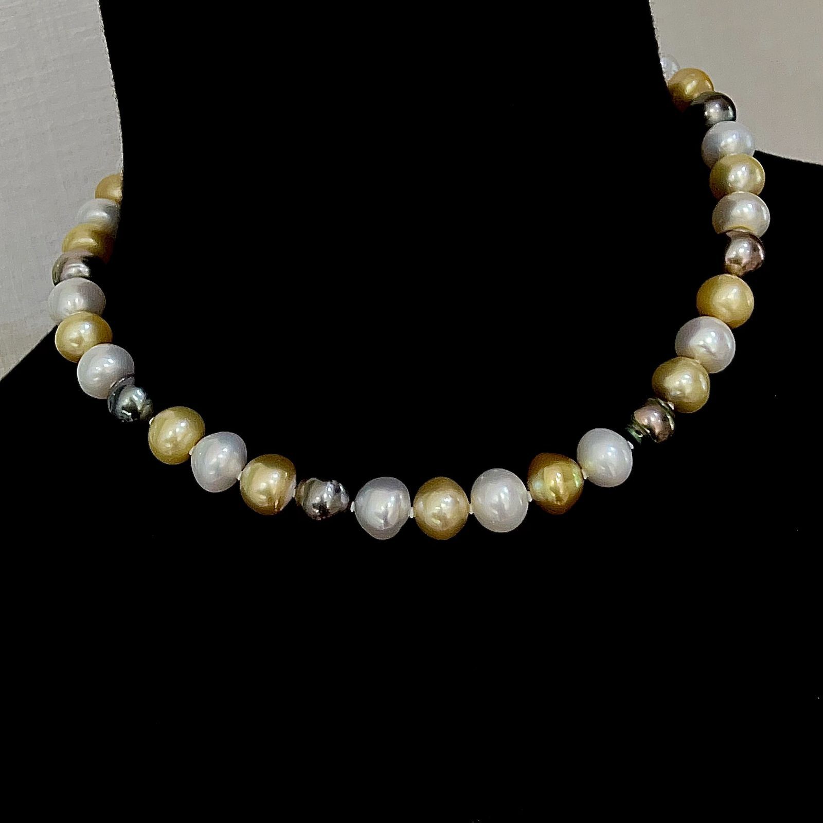 SV 天然 白蝶 南洋 黒蝶 タヒチ ゴールド ブラック シルバーグレイ パール ネックレス 42.5 cm P 10-11.9 mm 71.5 g 鑑別書 本真珠 レディース aua 119364 r 60615