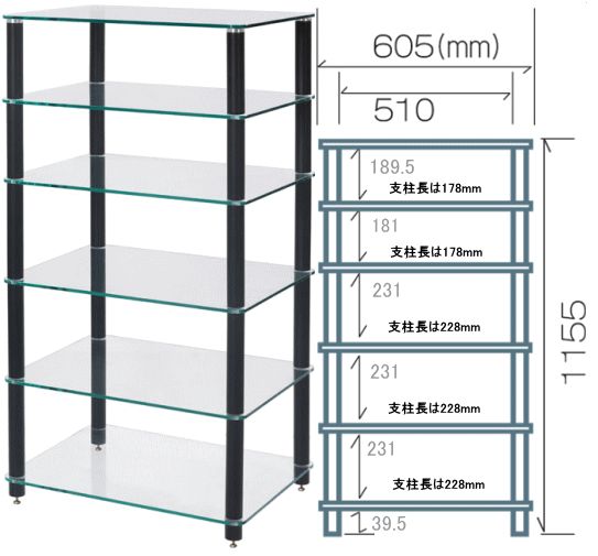 ●強化クリアガラス棚板・ブラックポール タテ型オーディオラック