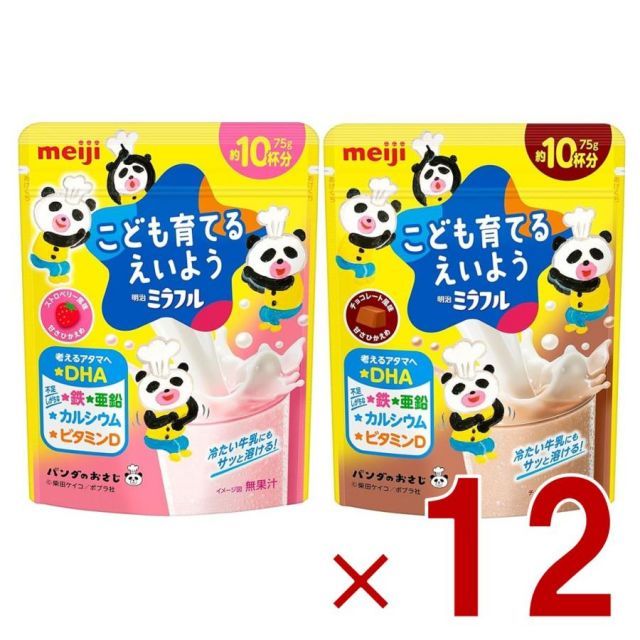 商品名:明治 ミラフル ストロベリー風味 チョコレート風味 2種 アソート セット 育てるえいよう 75g 約10杯分 DHA 鉄 亜鉛 カルシウム ビタミンD 各12個