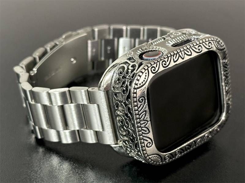 z銀鎧 Apple Watchバンド 316 Lステンレスベルト アップルウォッチ重厚メタルカバー 彫刻調精密ケース メンズ レディース 44 mm 45 46 49 ultra ウルトラ バンドのみ全サイズ シリーズ対応 取り付け時ネジ不要