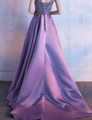 立体刺繍のサテンロングドレス。前と後ろで長さの違うフィッシュテールスタイルで大変豪華な印象で、かつ気品に満ちたとてもエレガントで上品なひとクラス上をいく一品です。トップス部分は小さなスパンコールを施した立体刺繍がサテン地に重ねられ豪華かつ上品でエレガントなドレスです。背中編み紐掛け。ファスナ-なし。裏地有。胸パット付き。