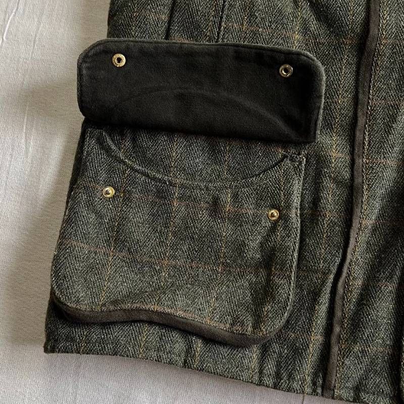 厚手で保温性に優れたツイード生地が使用されたカントリーハンティングベストです。