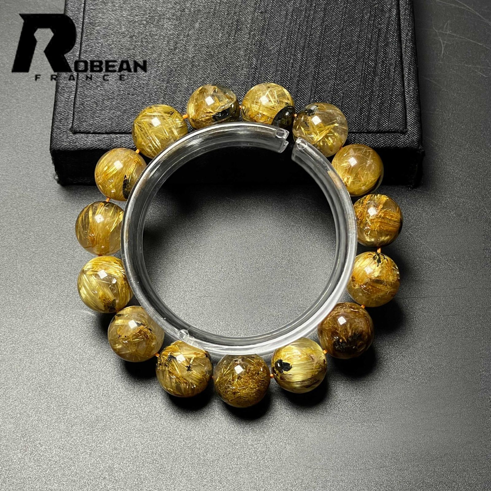 夢色 EU製 定価21万円 ROBEAN 太陽花タイチンルチル 黄金針水晶 金運 開運 ゴールド ブレスレット パワーストーン プレゼント1 13.8-14.7 mm