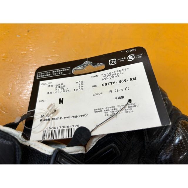 【送料無料!!】73272 新品 HONDA ホンダ RSタイチ ハイプロテクションレザーグローブ レッド SIZE:M 0SYTP-N69-RM