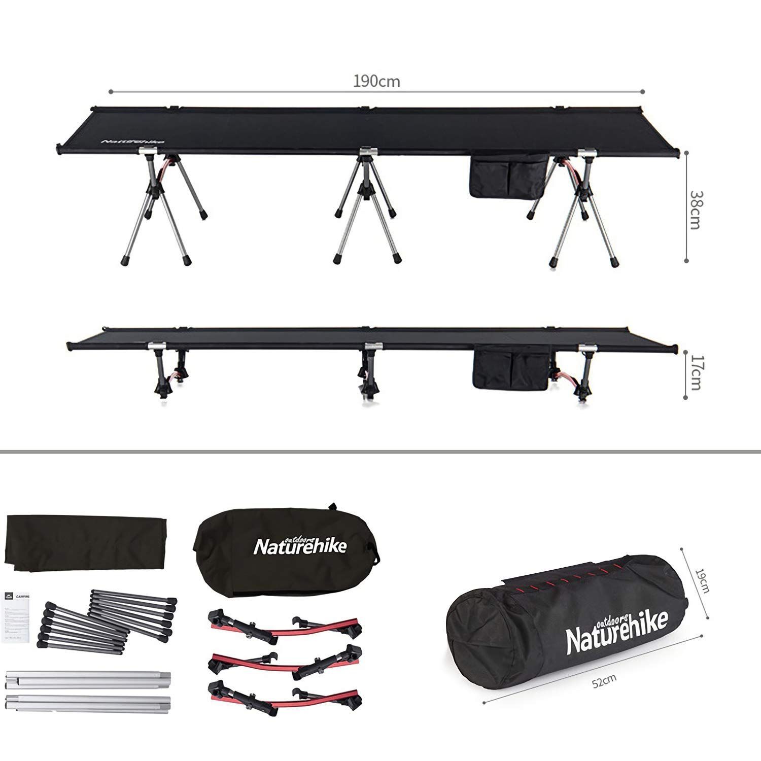 BBQなど簡易ベッド アウトドア 来客 お昼寝 通気性 用 防水 収納バッグ付き 耐荷重150 kg 超軽量 バイクツーリング一 コンパクト 簡易 折畳キャンプコット高低兼用 ベッド 付き アルミ アップグレード Naturehike