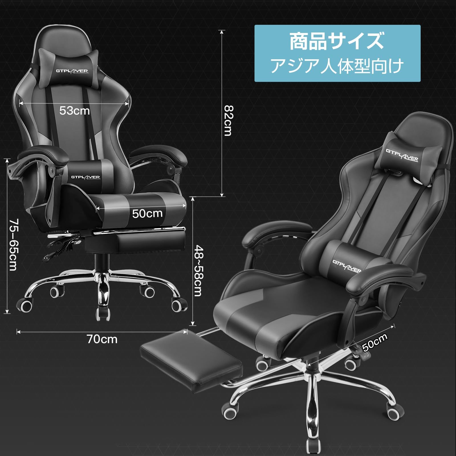 GTRacing ゲーミングチェア オットマン付き デスクチェア pcチェア 椅子 140°リクライニング パソコン イス テレワーク ゲームチェア ハイバック ヘッドレスト ひじ掛け付き PUレザー 気孔付き皮革 蒸れない座面 (GTPlayerシリーズPL800-grey)