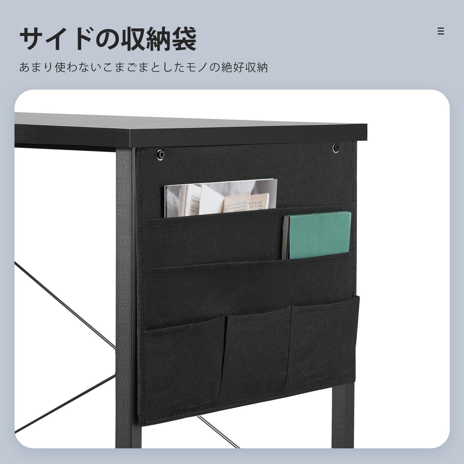 【十分な収納スペース】 l字デスクの反対側に引き出しとレイヤを追加して収納スペースを拡大しました。広い天板と足元がオープンスペースなので移動もスムーズです。開放感ある収納袋付き、デスクワークをサポートします。L型棚は中間板の高さを調節できるので、必要に応じて書類の高さを変えることができます。