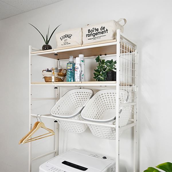 ●洗濯機周りの衣類や洗剤、タオルなどをスッキリ収納できて便利です。