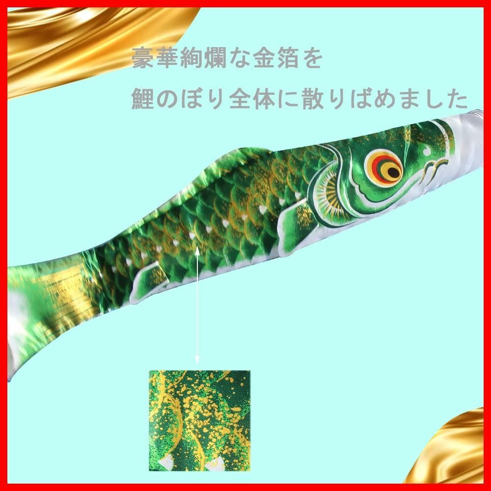 【こいのぼり】高級ポリエステルのサテン生地を使用し、金箔のぼかし撥水加工を仕上げ、金色の光のようにきらきら輝きます。撥水加工の技術なので、雨が丸い玉になってコロコロと表面を転がり落ちていくのをご覧になった方もいるはずで、その色は変わらない。豪華絢爛な金箔を鯉のぼり全体に散りばめました