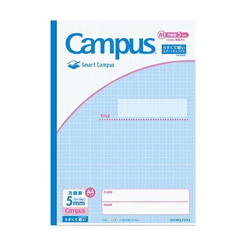 うすくて軽いキャンパスノート<スマートキャンパス>(A4・5mm方眼罫10mm実線入り・30枚)従来のキャンパスノートより平滑度の高い紙を使用しており、書き心地なめらか【検索キーワード】#コクヨ#KOKUYO#キャンパス#Campus#ノート#キャンパスノート#スマートキャンパス#ライトブルー