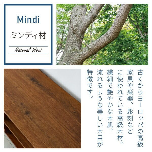 ・美しい木目と深みのある色合いが特徴のミンディ無垢材を使用。厚みのある板を使用しているので丈夫です。