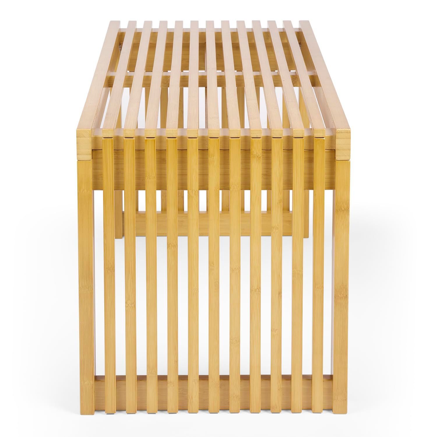 VaLaVie ダイニングベンチ 玄関椅子 リビングルームベンチ 寝室椅子 幅90 奥行38 高さ42 cm 天然竹製チェア 長い 薄い ナチュラル