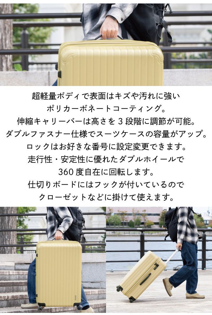 スーツケース キャリーケース キャリーバッグ キャリー 旅行 海外旅行 国内旅行 お出かけ 出張 ビジネス 帰省 普段使い 荷物 大荷物 持ち運び パッキング 大容量 容量アップ L Lサイズ 105L 105リットル 105L 105リットル 120L 120リットル 120L 120リットル 軽量 軽い 超軽量 5kg 5キロ 5Kg 5キロ ロック付き ロック機能 ロック TSロック Travel Sentry TRAVEL SENTRY 認可ロック 世界 世界基準 国際基準 飛行機 国際線 国内線 新幹線 電車 バス ダブルファスナー ファスナータイプ 傷 キズ 汚れ よごれ 強い ポリカーボネート ポリカーボネートコーティング ハードタイプ 丈夫 耐久性 保護 360度 回転自在 走行 安定 ホイール ダブルホイール タイヤ 4輪 4輪 伸縮キャリーバー キャリーバー 持ち手 取っ手 調節可能 調節 高さ調節 3段階 3段階 ワンタッチ クロスベルト ベルト 仕切り 仕切りボード フック付き仕切りボード フック 掛ける 掛けられる 外せる 取り外し お土産 おみやげ スペース 確保 1週間 1週間 1週間以上 1週間以上 7日 7日 7泊 7泊 8日 8日 8泊 8泊 9日 9日 9泊 9泊 10日 10日 10泊 10泊 長期 長期間 家族 まとめて オリーブ 緑 濃い緑 モスグリーン カーキ 茶色 黄色 黄土色 ブラック 黒 シルバー 銀 アースカラー シンプル かっこいい カッコイイ スタイリッシュ おしゃれ オシャレ 飽きない デザイン 送料無料 キャプテンスタッグ CAPTAIN STAG パール金属