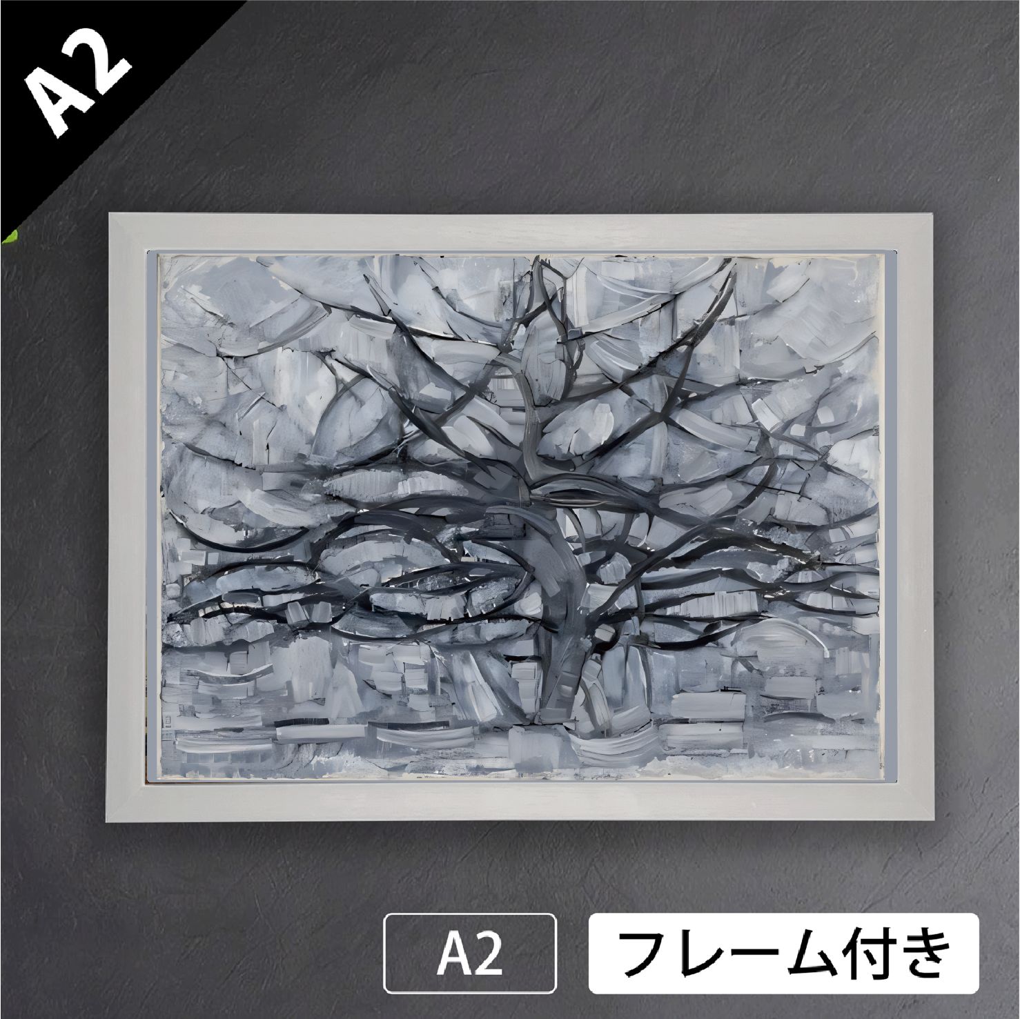 ピート モンドリアン Gray Tree 灰色の木 1911年 キュビズム 画家 オランダ アートポスターA 2 マット紙 フレーム付 IN