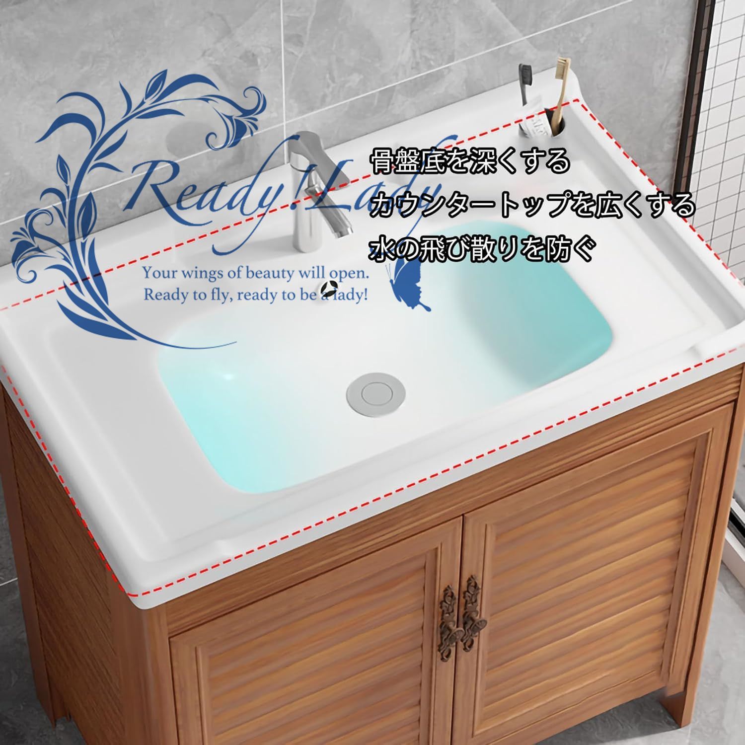 洗面台の革新的デザイン: 洗面台キャビネットのドアは静音バッファヒンジを採用し、開閉が静かでスムーズ。さらに、5つの異なるサイズが用意されており、小さな家から大きな家まで幅広く対応。革新的なデザインがさまざまな空間に調和します。(梱包が大きいため2梱包での発送となります)