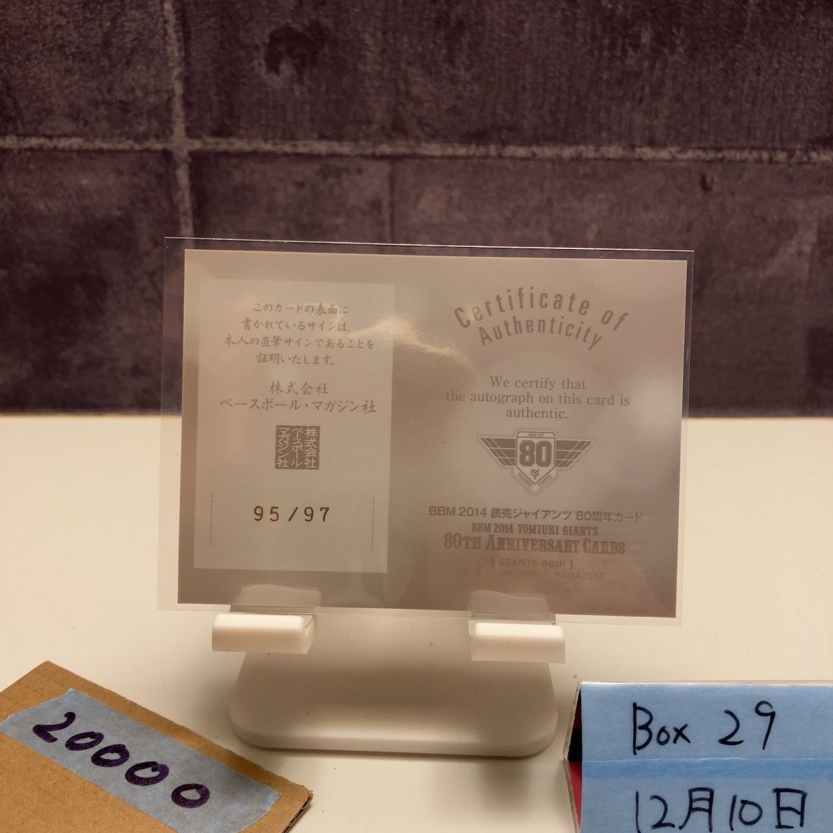 2014 BBM 堀内恒夫 95/97 直筆サインカード 読売ジャイアンツ 80th Anniversary