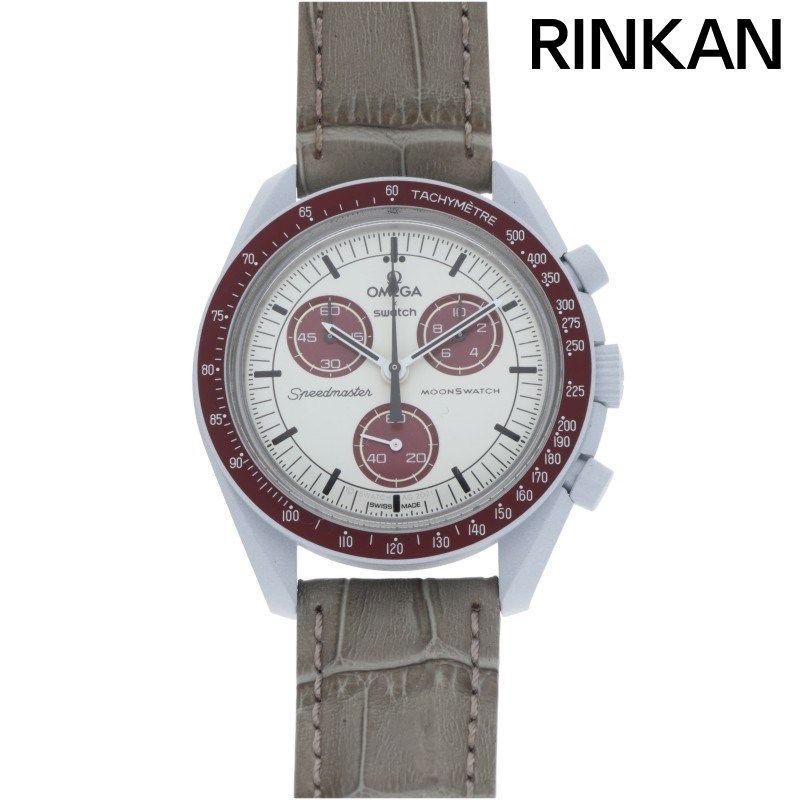 オメガ ×スウォッチ Swatch シーマスター MISSION TO PLUTO クロノグラフ バイオセラミック ホワイト バーガンディ文字盤クォーツ腕時計 メンズ 40 mm
